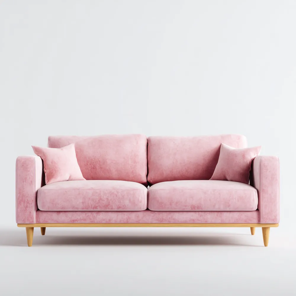 Matériaux et FabricationFabriqué en velours doux dans une teinte Rose délicate, ce canapé repose sur un cadre en bois robuste, offrant durabilité et style.