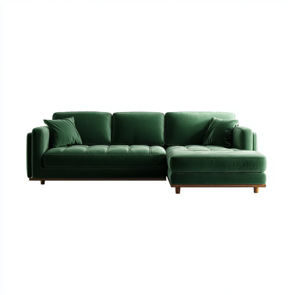 Découvrez ce canapé d'angle en velours qui associe élégance et confort. Parfait pour les salons modernes, il apporte une touche de sophistication à votre intérieur.