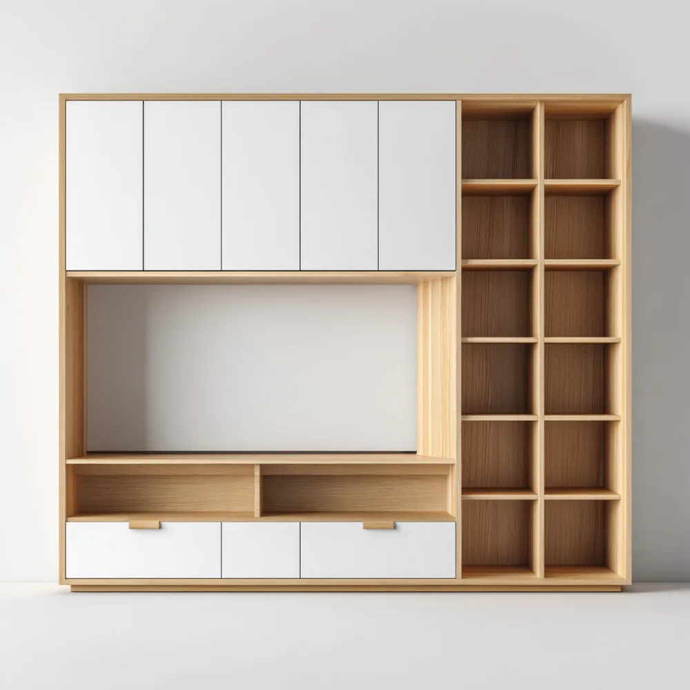 Ce meuble de rangement moderne allie fonctionnalité et esthétique. Idéal pour les salons, il offre une solution élégante pour organiser votre espace de vie.